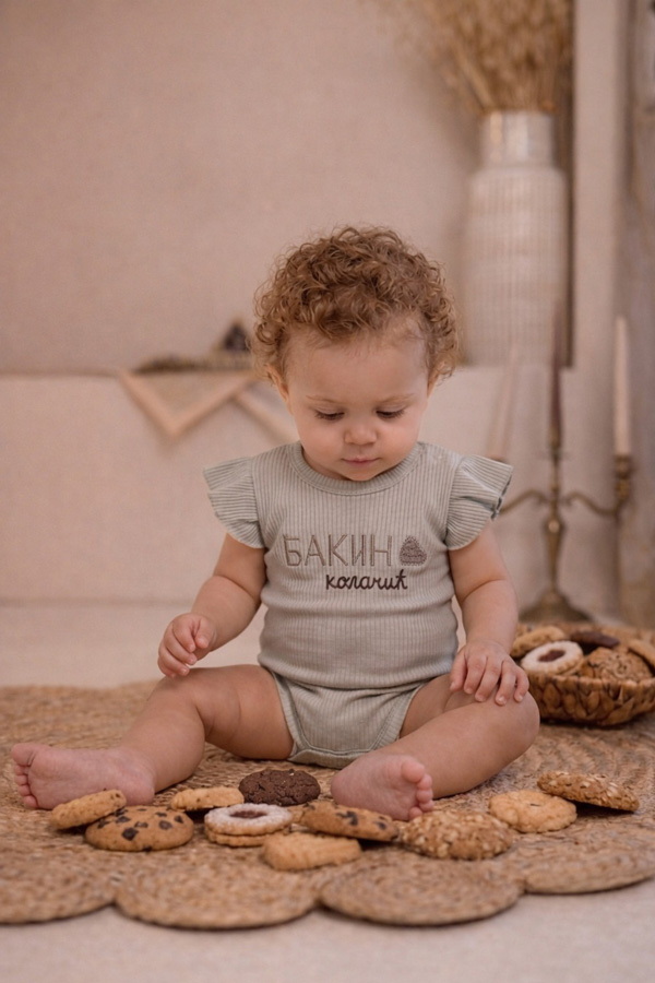 Bodi Bakin kolačić sašili smo za one dane kada „kolačić“ ide na čuvanje. Nežan je prema bebinoj koži, a dovoljno izdržljiv da preživi sve bakine zagrljaje, ručkove koji „moraju da se pojedu“ i puzanje po podu. Zaboravite vanilice i štrudle, zna se ko je sada najslađi u bakinoj kući. 🙂